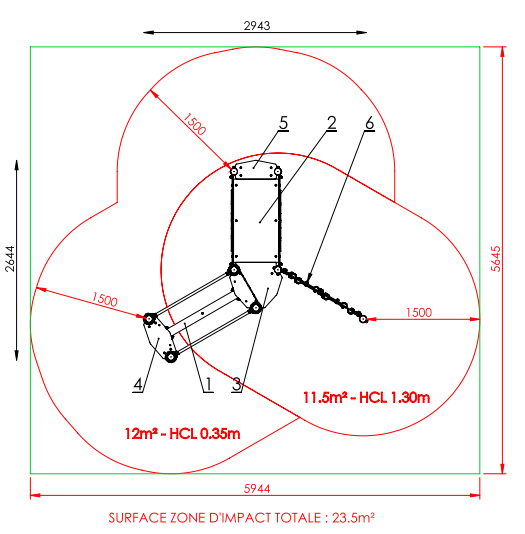 Maximum free fall height : 1,30m