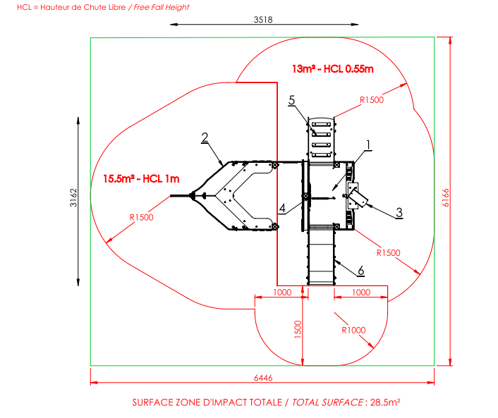 Maximum free fall height : 1m
