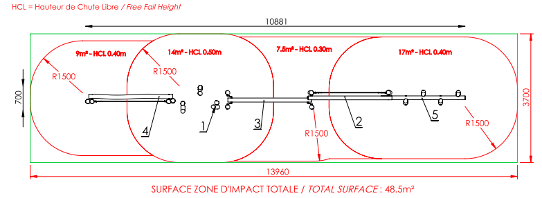 Play dimensions : 10.96 x 0.70m