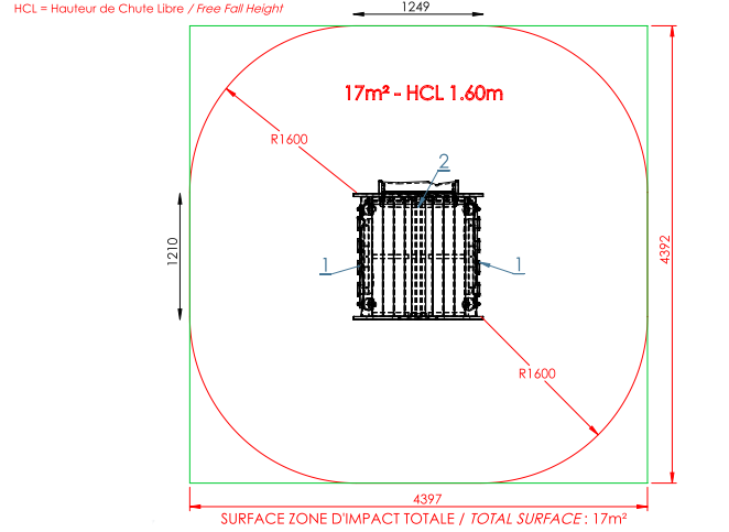 Maximum free fall height : 1.60m
