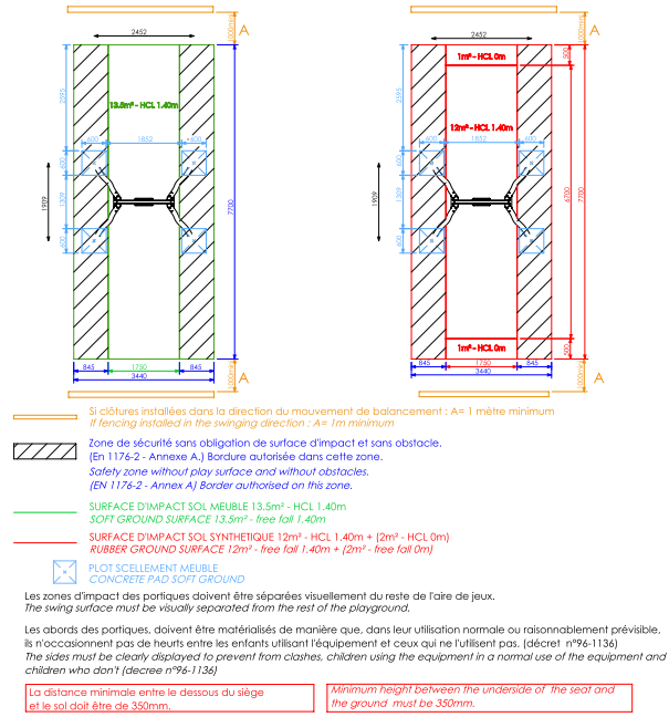 Maximum free fall height : 1,40m