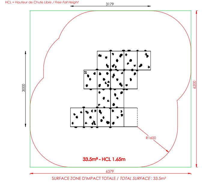 Hauteur chute libre maxi : 1.60 m