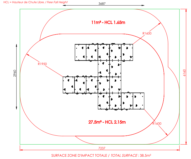 Hauteur chute libre maxi : 2.15 m
