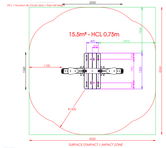 Hauteur chute libre maxi : 0.75 m