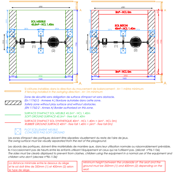 Hauteur chute libre maxi : 1.40m
