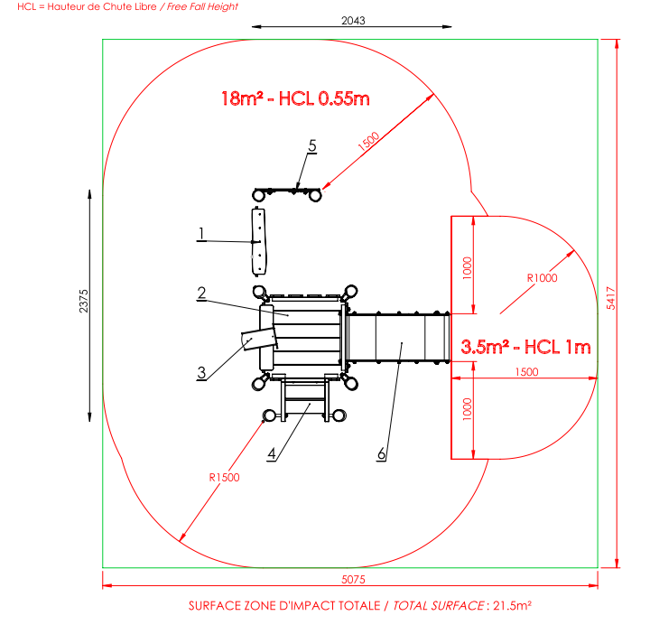 Hauteur chute libre maxi : 1m
