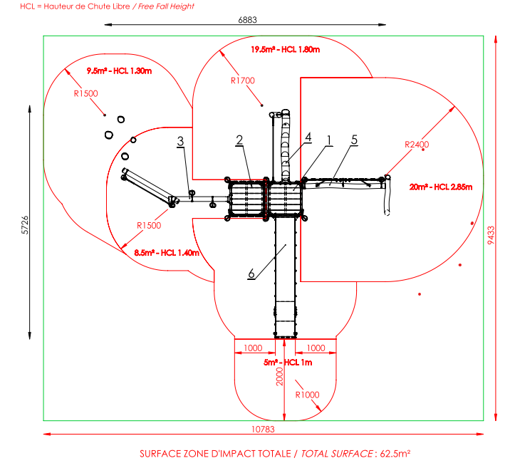 Hauteur chute libre maxi : 2.85 m