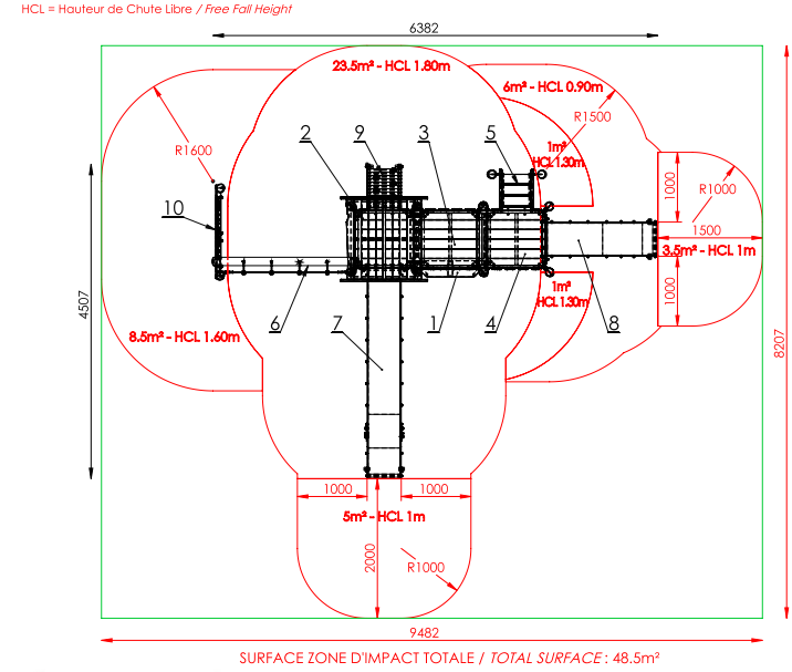 Hauteur chute libre maxi : 1.80m