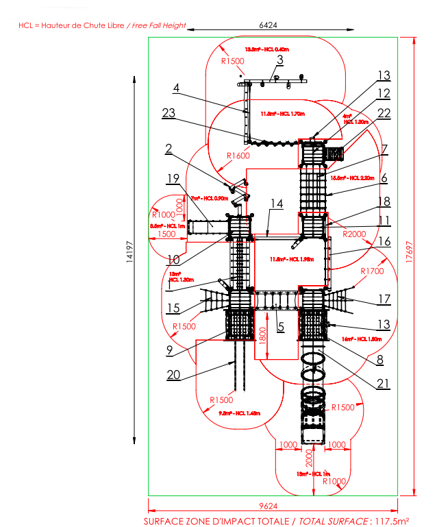 Dimensions du jeu : 14.19 x 6.44m