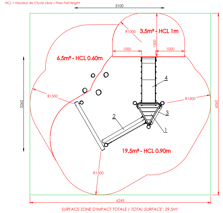 Hauteur chute libre maxi : 1m