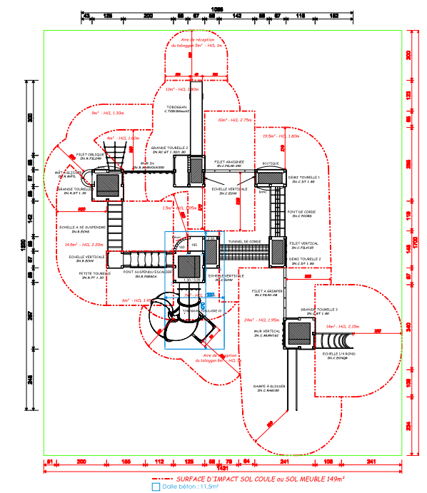 Dimensions du jeu : 13,20 x 10,86 m